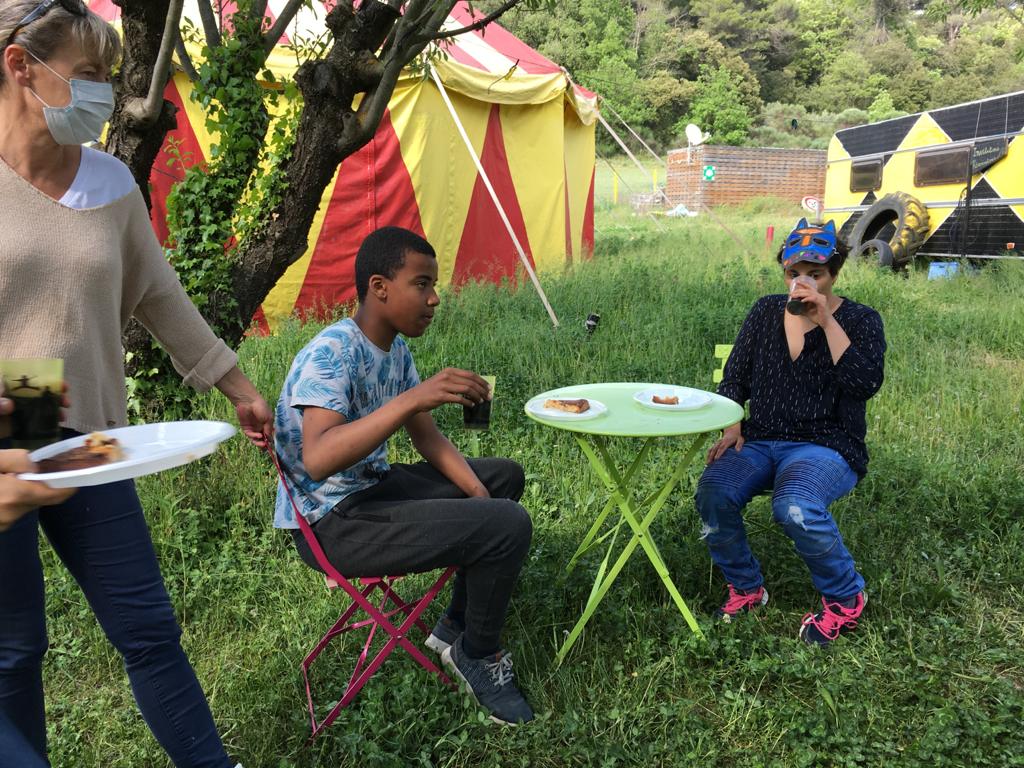« Quelques images des enfants à l’IME où la vie suit son cours. Le goûter festif du vendredi s’est inscrit dans la vie institutionnelle à l’heure du confinement. Les enfants apprécient y être et nous nous prenons à rêver de la venue de musiciens pour un petit concert ».