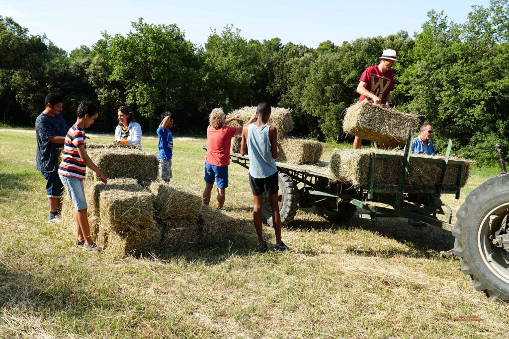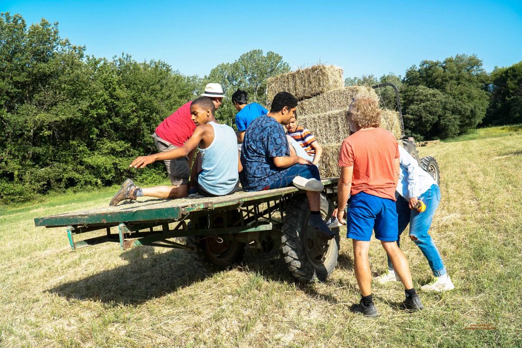 La récolte du fourrage se fait dans la joie et la bonne humeur et se termine par un grand repas partagé avec l’ensemble de l’IME La Bourguette.