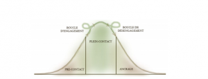 Il s’en suit la boucle de désengagement où le participant comprend que la séance arrive à son terme et qu’il doit se désengager par lui-même de l’animal pour éviter la frustration de la rupture.