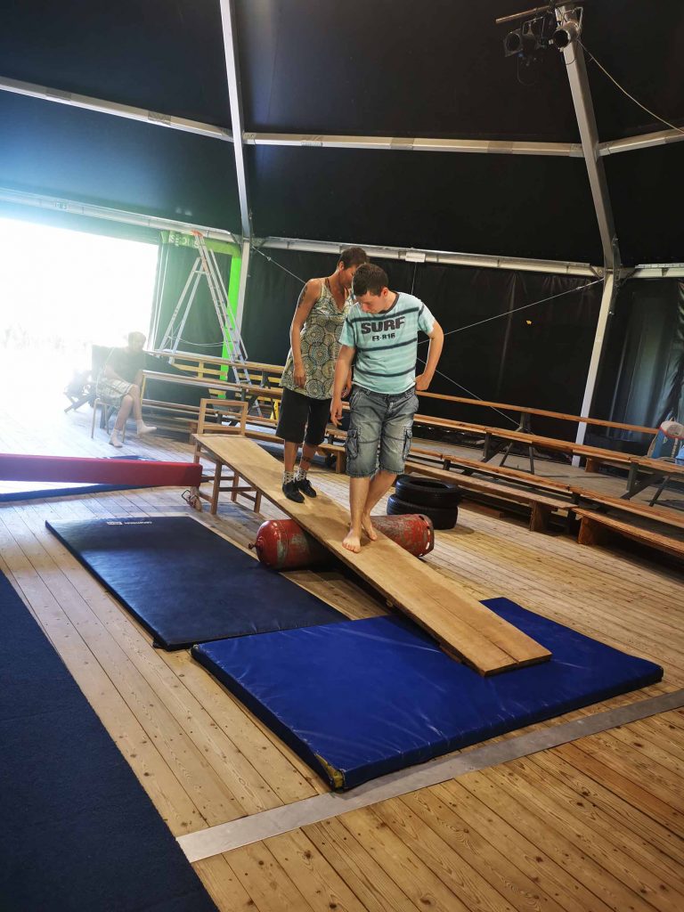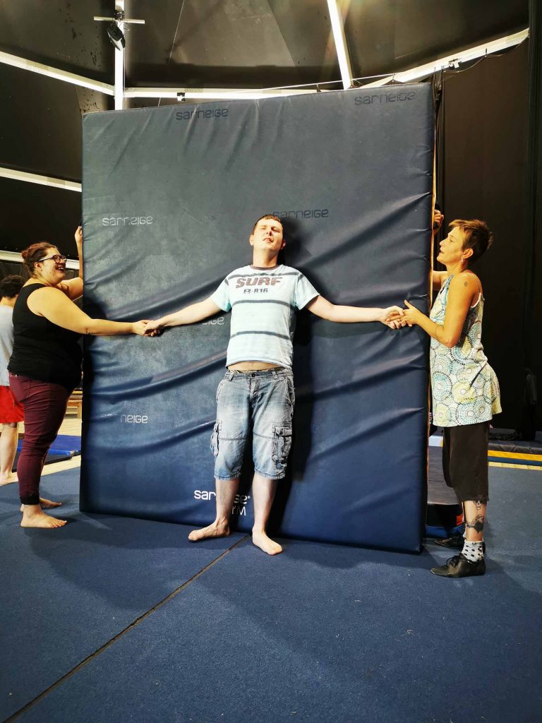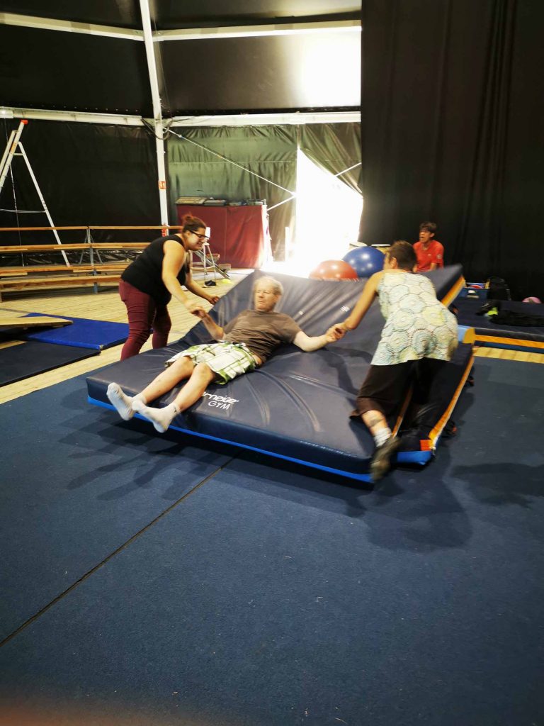Le FAM Les Capelières prend possession du Chapiteau à l’IME La Bourguette, pour un entrainement d’activités liées au cirque permettant un travail sur la motricité, la coordination, la confiance en soi ainsi que la confiance aux encadrants.